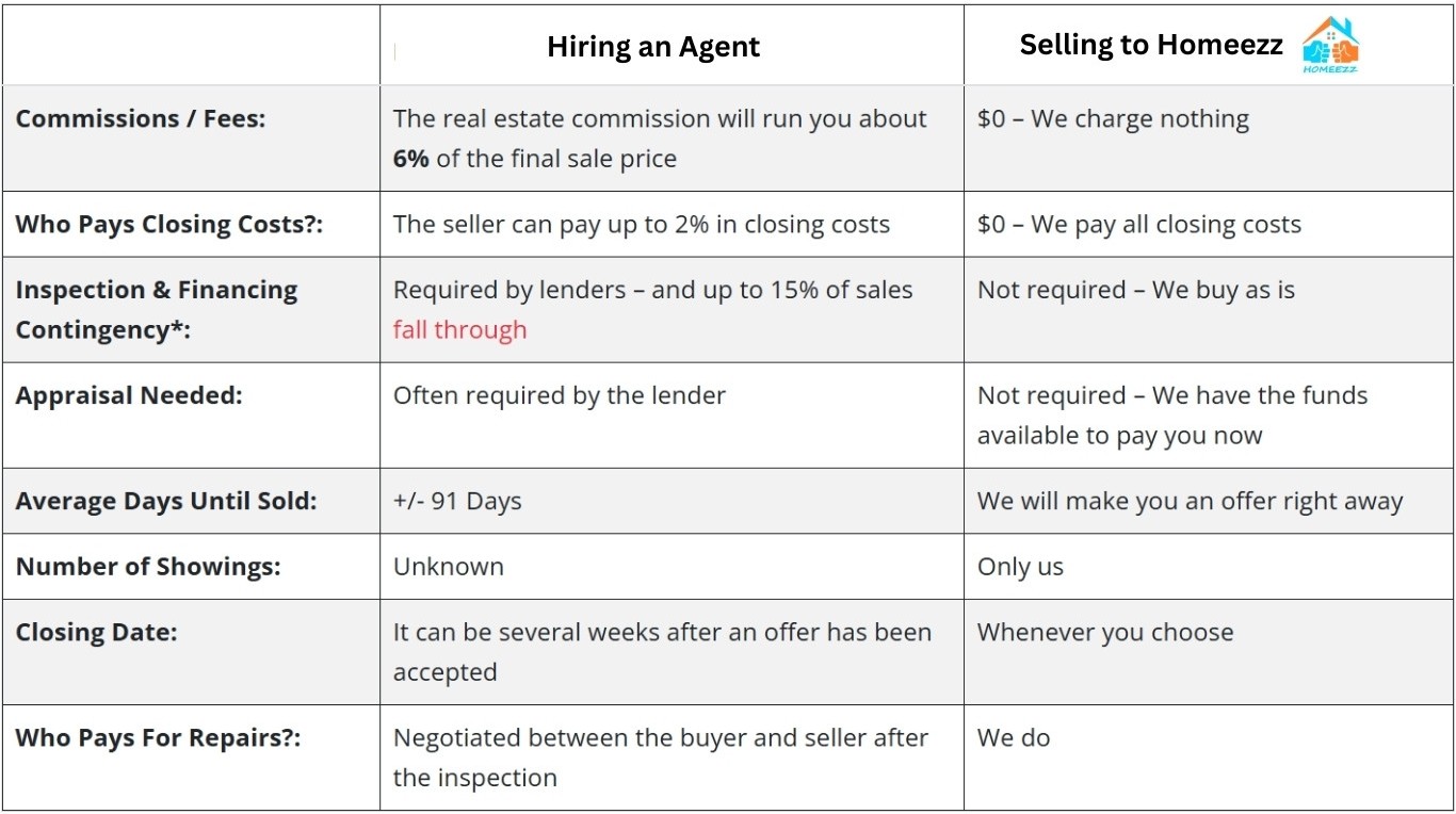 We want to make things easy for you. What we offer you is what you get. You won’t have to worry about paying any closing costs or fees to us. We handle everything so you can sell fast and move on. By not working with an agent, you avoid their commissions!